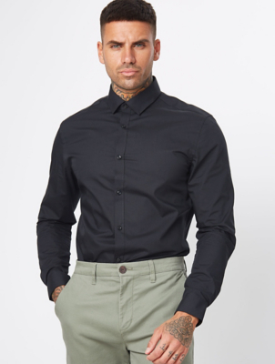 Black Slim Fit Long Sleeve Shirt Men George At Asda